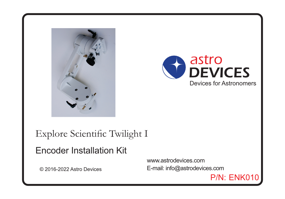 The Explore Scientific Twilight-I Encoder Installation Kit is created specifically for Explore Scientific Twilight-I mounts.