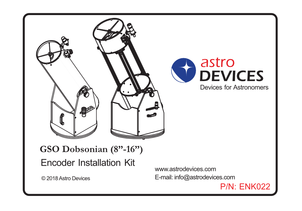The GSO Dobsonian Encoder Installation Kit is created specifically for Dobsonian telescopes manufactured by GSO (Apertura, Bintel, Bresser, Omegon, Zhumell) and Orion (Skyline).
