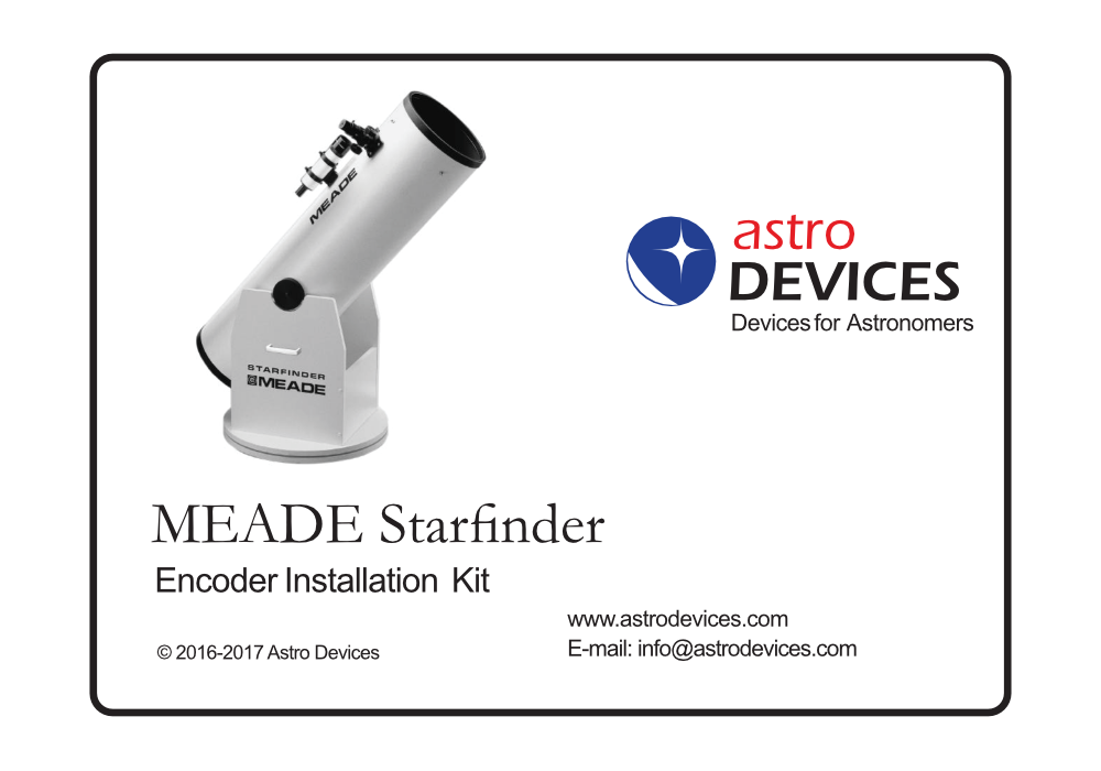The Meade Starfinder Dobsonian Encoder Installation Kit is created specifically for Meade Starfinder Dobsonians of all sizes.