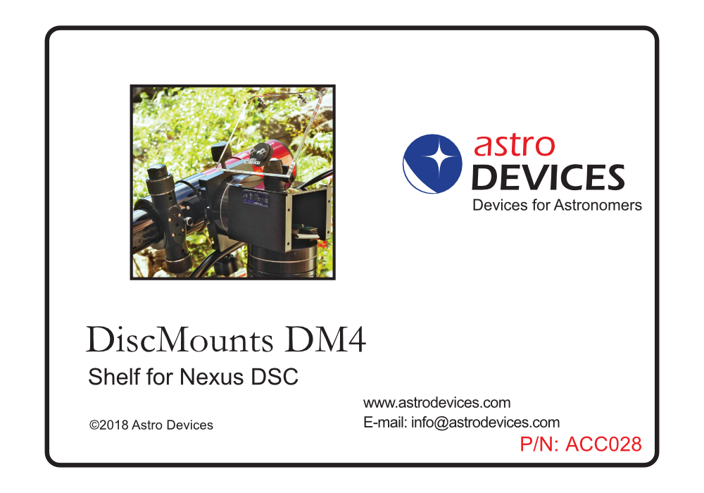 Need to mount your Nexus DSC to a DiscMounts DM4 mount? This clear, acrylic shelf makes it easy to keep your Nexus DSC & Nexus DSC Pro attached to the DiscMounts DM4.