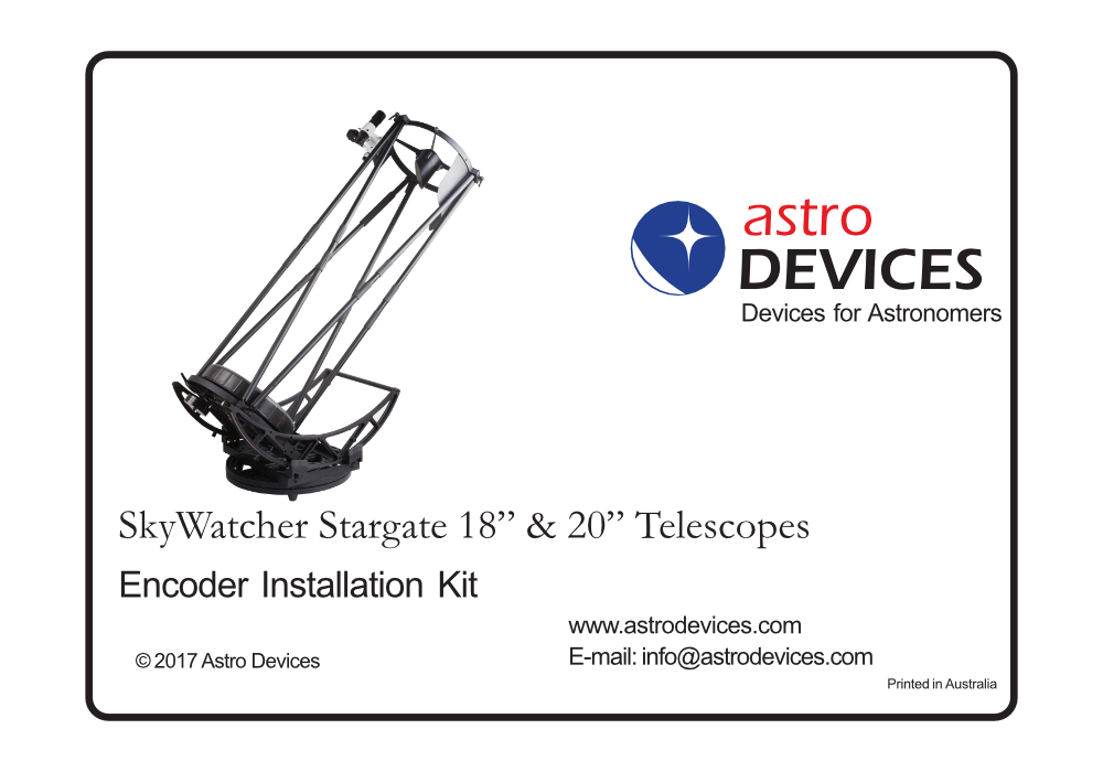 The SkyWatcher StarGate 18” and 20” Encoder Installation Kit is created specifically for SkyWatcher StarGate 18” and 20” Dobsonians.