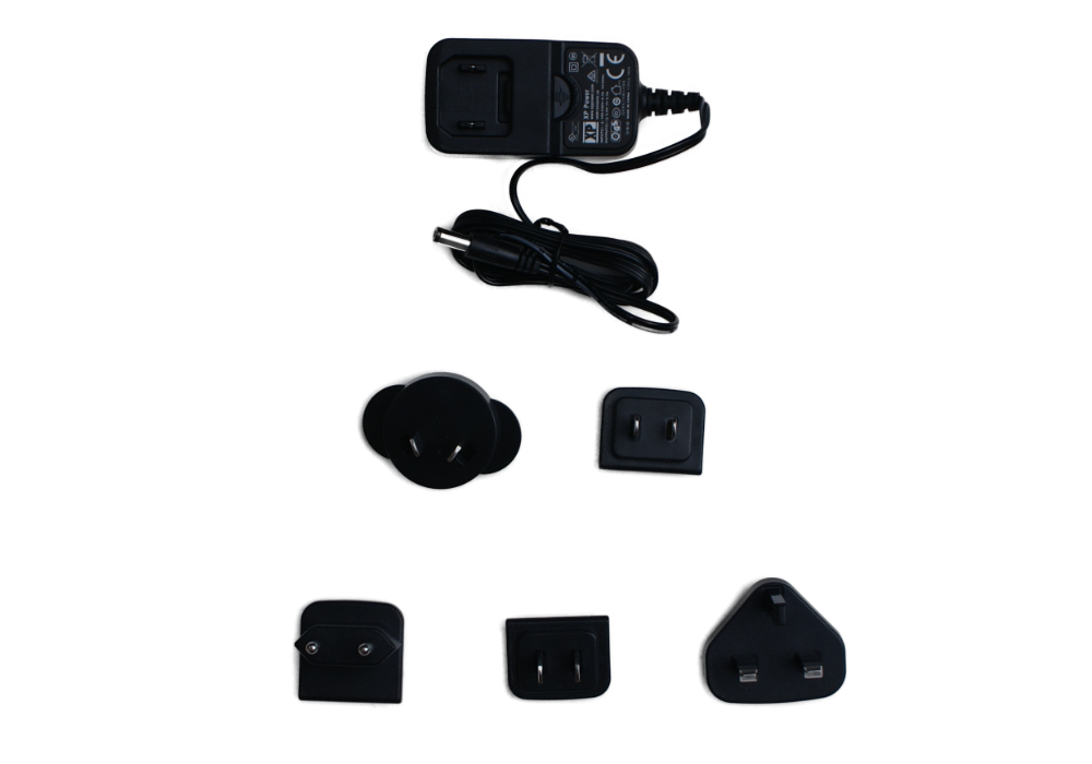 The universal power adapter includes a set of 5 interchangeable plugs that allow you to charge your Nexus DSC, Nexus DSC Pro, and Nexus-II no matter your location. Simply attach the correct plug to the wall mount adapter and then plug it into the wall socket.
